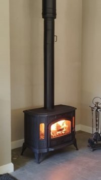 Модель имеет панорамное окно, состоящее из трех частей со стеклами, устойчивыми к температуре горения до 800 градусов Цельсия. Благодаря широкому обзору удобно контролировать процесс горения сырья. Смотровое окно создает атмосферу уюта в помещении. Также стекло устойчиво к гари, потому не покрывается копотью. Вне зависимости от температуры и времени горения, стекло не потрескается. Оно прочно закреплено в пазах, которые полностью исключают его выпадение.